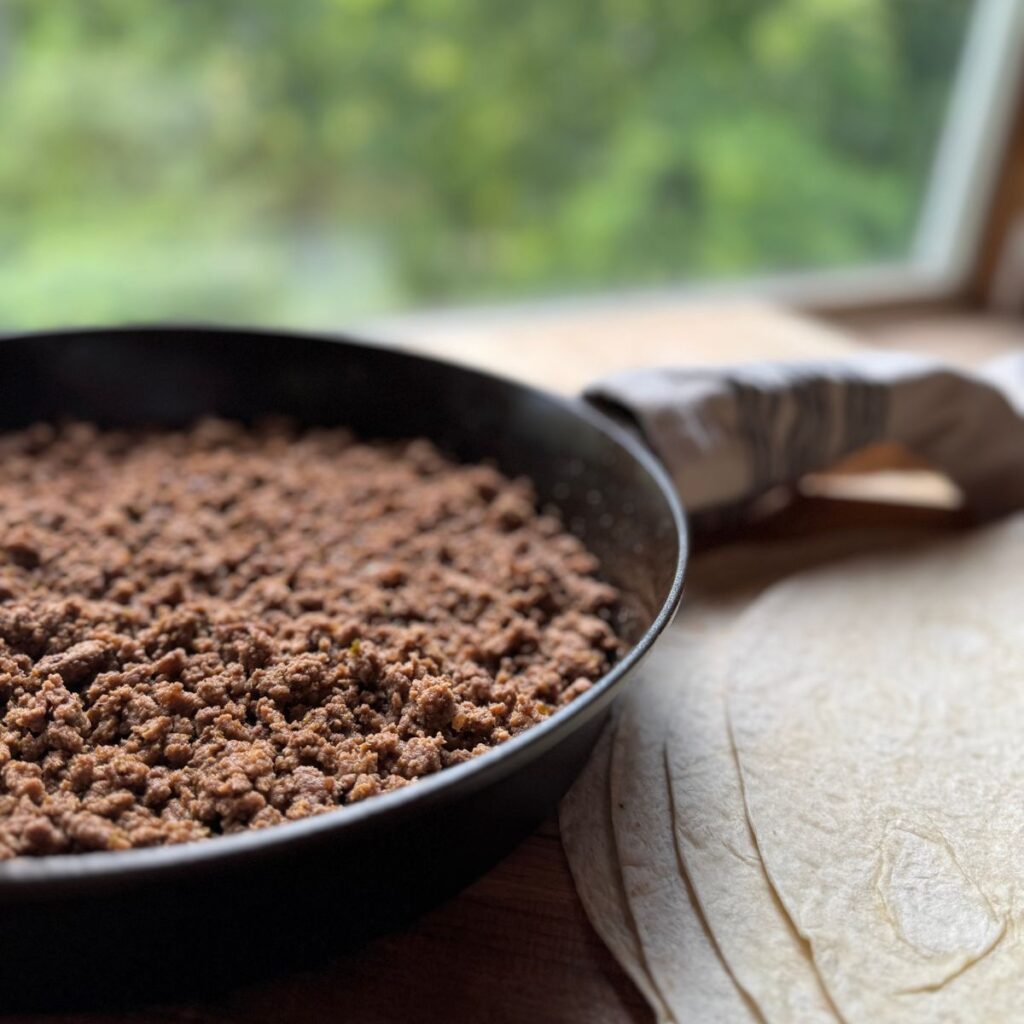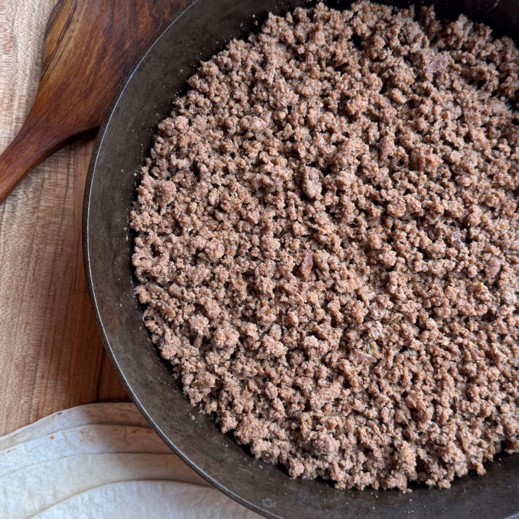 - Cook the beef: In a skillet over medium heat, cook the ground beef until browned and fully cooked through. Drain excess fat if needed.